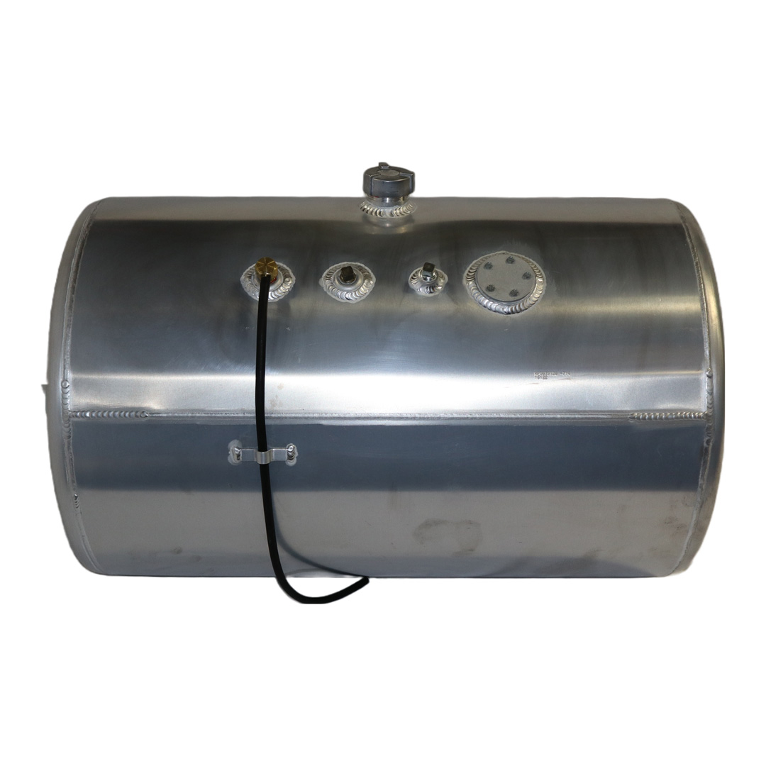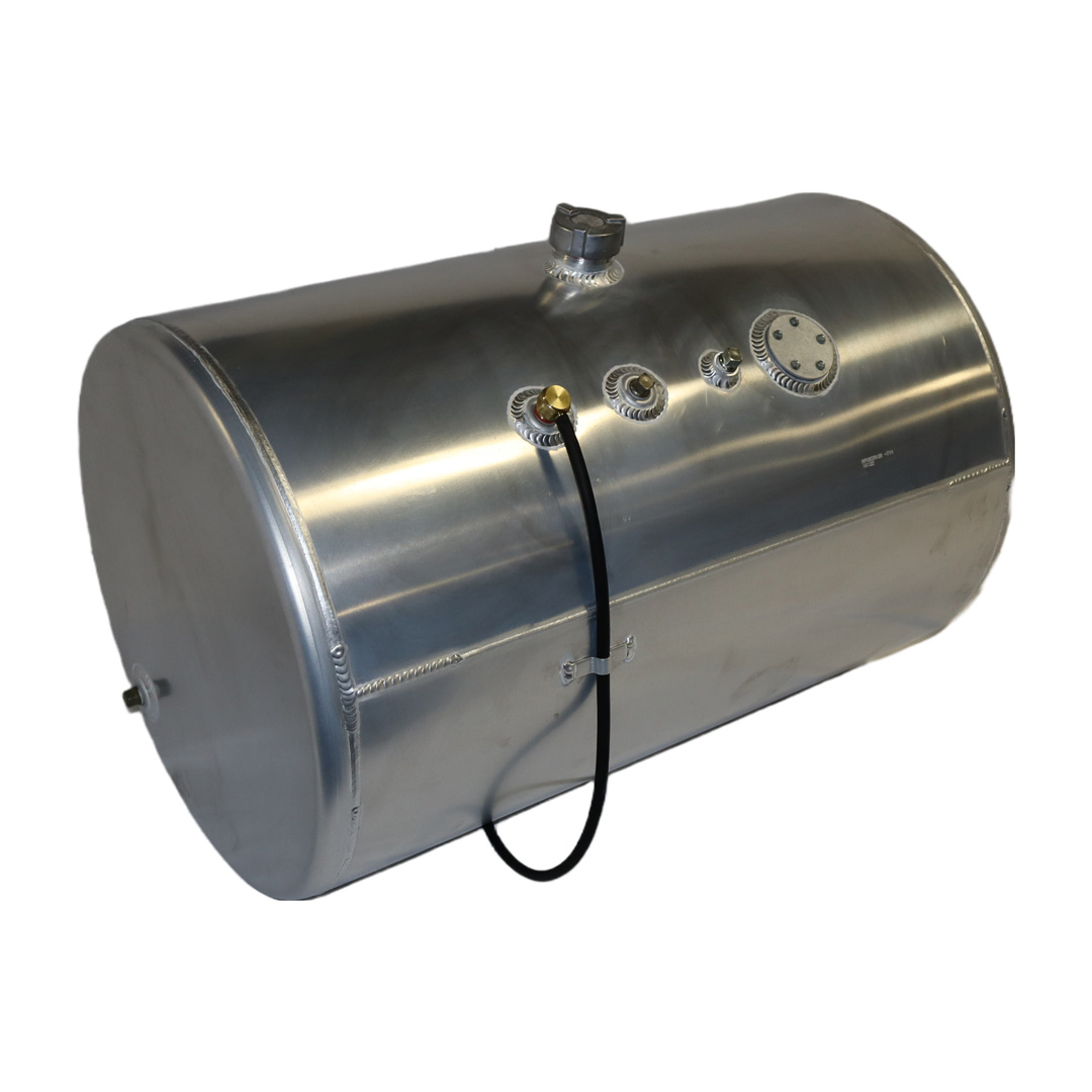 Replace your malfunctioning, leaking or rusted cylindrical shaped diesel fuel tank with a direct-fit aftermarket replacement diesel fuel tank from Cleveland Tank. Our cost-effective cylindrical replacement tanks are made from lightweight aluminum for corrosion resistance, weight savings and superior durability and strength. The aluminum tanks feature a cylindrical or round design, have a bright acid-etched finish and come in various size capacities. Tanks are also pressure tested for leaks, are for use with diesel fuel and are DOT-approved. All tanks include a rollover protection vent, vent tubing, fuel cap, drawtube, return, equalizer fittings and sending unit flange. Optional features include a sending unit, sight gauge, locking fuel cap and drain check valve. Find the cylindrical aluminum fuel tank that matches your applications specs for an original equipment-like fit and installation. This specific aluminum cylindrical-shaped tank has a capacity of 50 gallons, weighs 65 lbs. and measures 34.00 in. long by 22.00 in. in diameter.