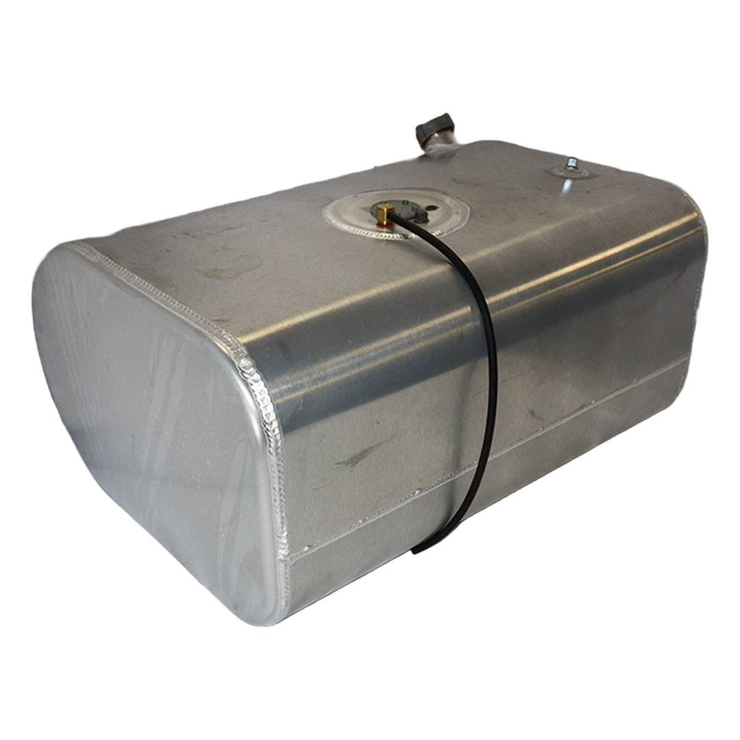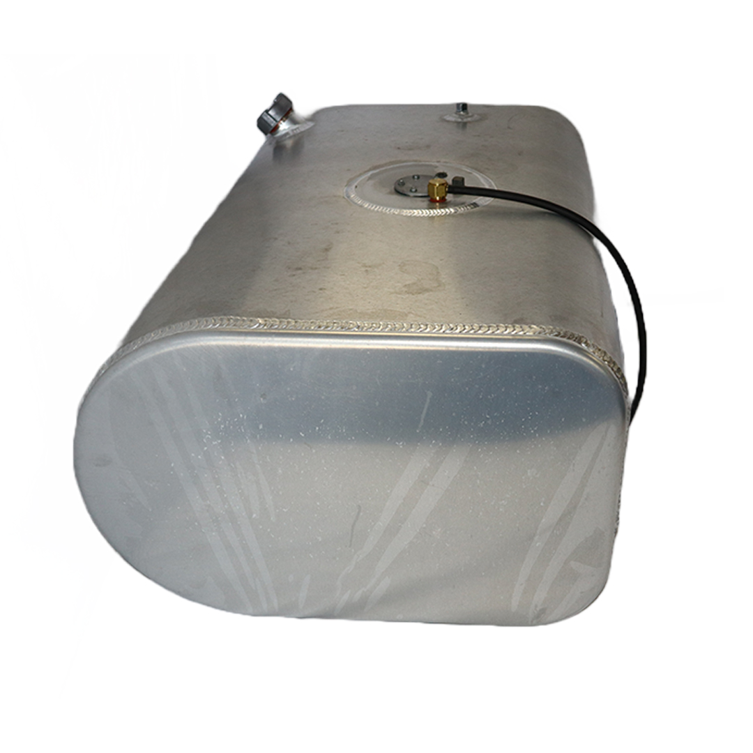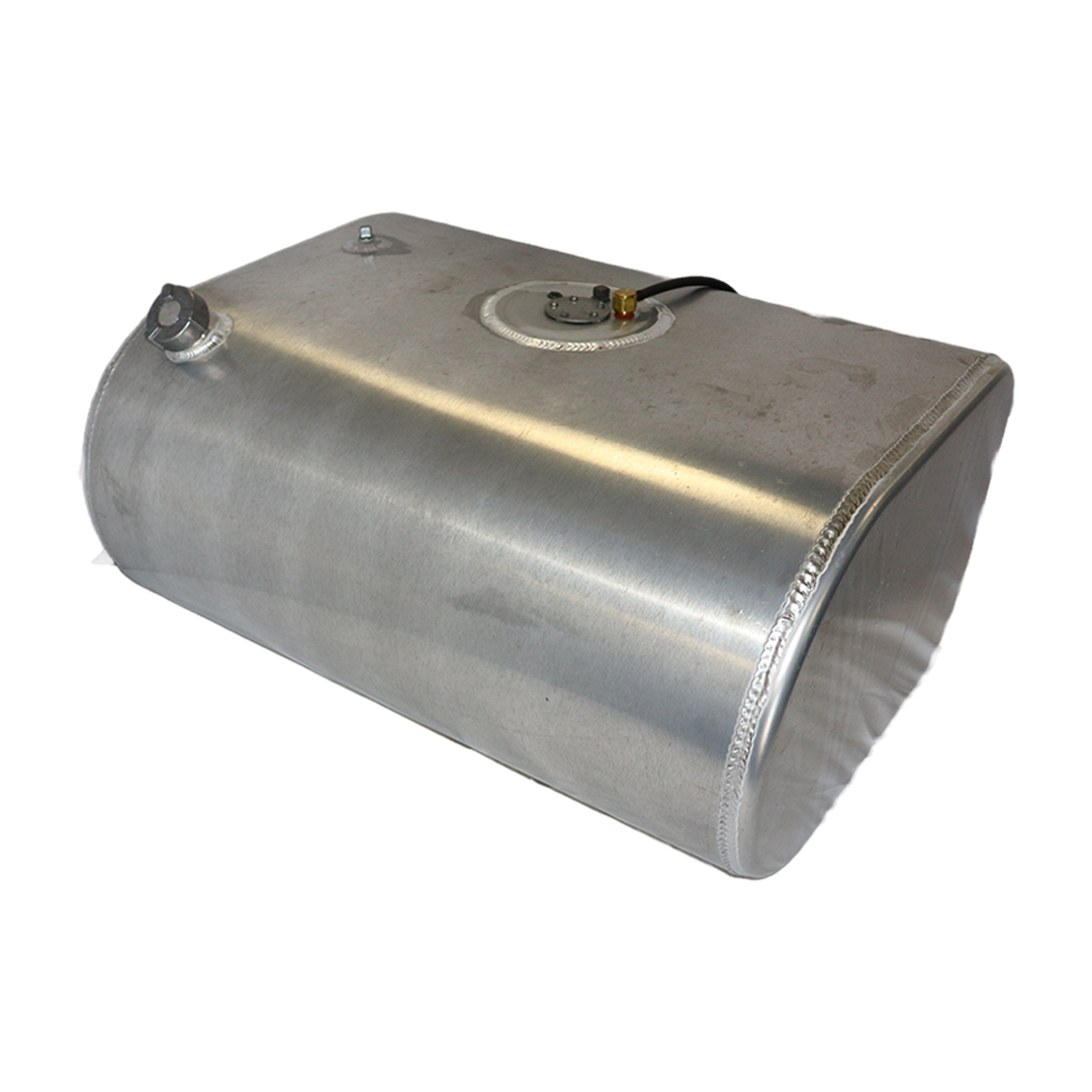Stop paying high dealer prices for replacement fuel tanks and equip your application with one of these cost-effective D-shaped aftermarket replacement diesel fuel tanks from Cleveland Tank. Featuring a D-shaped design, the cost-effective replacement tanks are the perfect solution for leaking, malfunctioning or rusted OE tanks. Our D-tanks are manufactured from high-strength lightweight aluminum for corrosion resistance, weight savings and superior durability. The aluminum tanks have a bright acid-etched finish, are pressure tested to ensure leak-free performance and come in various size capacities. D-tanks are also DOT-approved and are for use with diesel fuel. All D-shaped replacement tanks come with a rollover protection vent, vent tubing, fuel cap, drawtube, return, equalizer fittings and sending unit flange. Optional features include a sending unit, sight gauge, locking fuel cap and drain check valve. Find the right D-shaped fuel tank that matches your applications specs for an original equipment-like fit and installation. This specific aluminum D-shaped tank has a capacity of 50 gallons, weighs 50 lbs. and measures 28.00 in. long by 25.00 in. wide by 19.00 in. high.