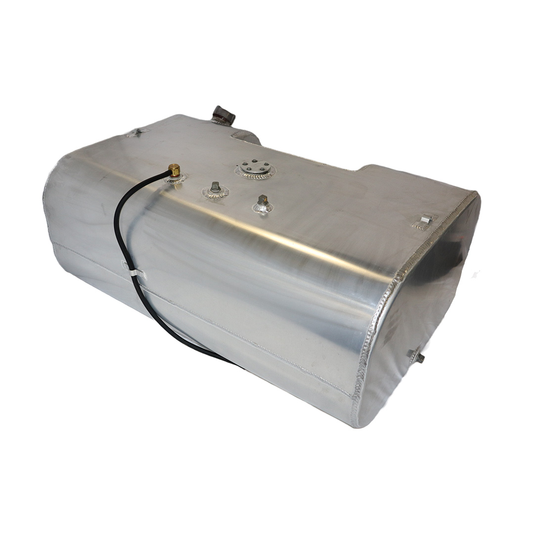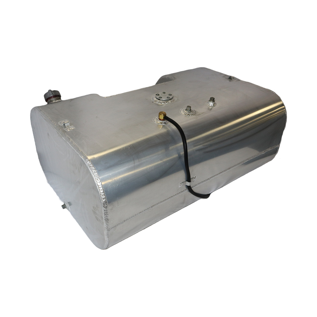 The perfect solution when replacing leaking, malfunctioning or rusted side-mount fuel tanks, these replacement rectangular aluminum diesel fuel tanks with built-in steps from Cleveland Tank are built with the same quality – all at an economical price! Our rectangular aluminum fuel tanks with built-in steps are manufactured from lightweight aluminum for corrosion resistance, weight savings and superior durability and strength. The aluminum tanks feature a rectangular design with built-in grated aluminum steps, have a bright acid-etched finish and are available in various size capacities. All aluminum step tanks are also leak-tested, DOT-approved and for use with diesel fuel. These aftermarket rectangular step tanks come with a rollover protection vent, vent tubing, fuel cap, drawtube, return, equalizer fittings and sending unit flange. Optional features include a sending unit, sight gauge, locking fuel cap and drain check valve. Find the right aluminum step fuel tank that matches your applications specs for an original equipment-like fit and installation. This specific aluminum rectangular-shaped tank with built-in step has a capacity of 50 gallons, weighs 120 lbs. and measures 37.00 in. long by 25.00 in. wide by 15.25 in. high.