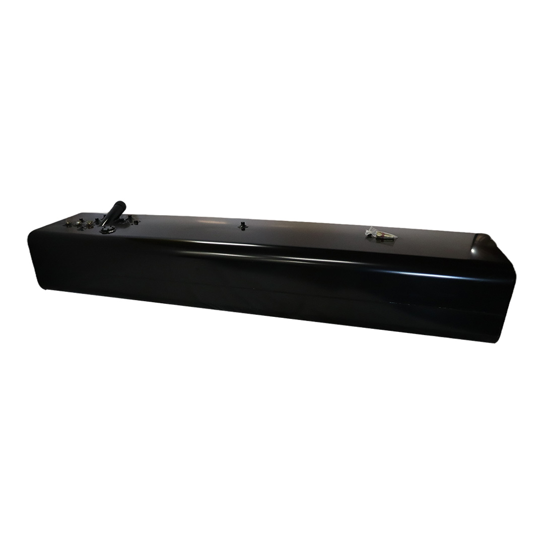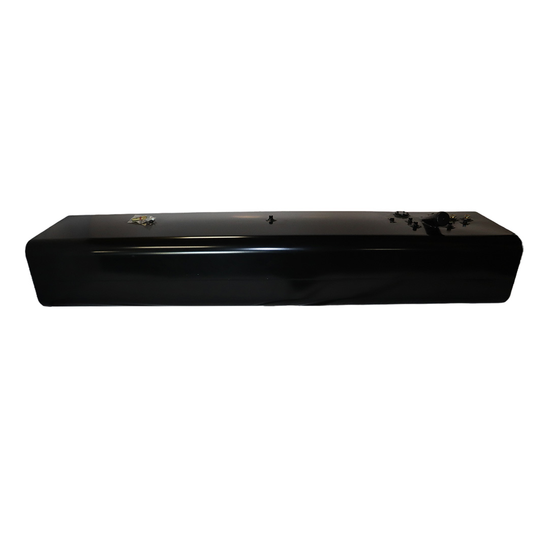 Replace your leaking, malfunctioning or rusted OE fuel tanks with these economically priced aftermarket replacement diesel fuel tanks from Cleveland Tank. Designed and manufactured to the same quality standards and specs as OE-supplied tanks, these direct-fit replacement tanks feature a rectangular design. They’re made from heavy-duty mild-grade steel for superior strength and durability, come with a gloss black powder coat finish for years of long-lasting corrosion protection and are pressure tested to ensure leak-free performance. Our rectangular steel tanks have an internal rust preventive coating applied, are DOT-approved, are for use with diesel fuel and are available in various size capacities.  All tanks come with a magnetic drain plug, rollover protection vent, vent tubing, fuel cap, drawtube, return, equalizer fittings and sending unit flange. Optional features include a sending unit, sight gauge, locking fuel cap and drain check valve. Find the rectangular steel fuel tank that matches your applications specs for an original equipment-like fit and installation. This specific steel rectangular-shaped tank has a capacity of 100 gallons, weighs 190 lbs. and measures 91.00 in. long by 20.50 in. wide by 14.00 in. high.