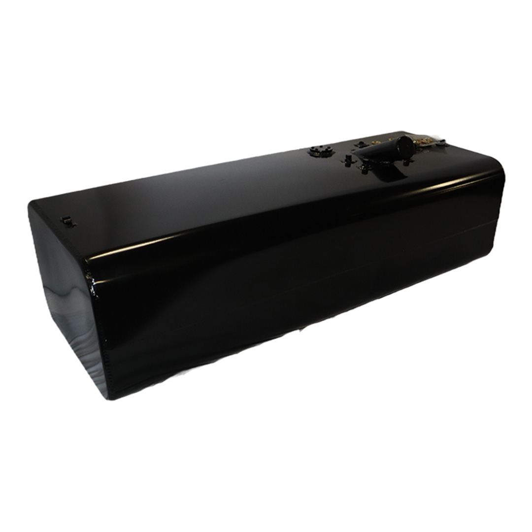 Replace your leaking, malfunctioning or rusted OE fuel tanks with these economically priced aftermarket replacement diesel fuel tanks from Cleveland Tank. Designed and manufactured to the same quality standards and specs as OE-supplied tanks, these direct-fit replacement tanks feature a rectangular design. They’re made from heavy-duty mild-grade steel for superior strength and durability, come with a gloss black powder coat finish for years of long-lasting corrosion protection and are pressure tested to ensure leak-free performance. Our rectangular steel tanks have an internal rust preventive coating applied, are DOT-approved, are for use with diesel fuel and are available in various size capacities.  All tanks come with a magnetic drain plug, rollover protection vent, vent tubing, fuel cap, drawtube, return, equalizer fittings and sending unit flange. Optional features include a sending unit, sight gauge, locking fuel cap and drain check valve. Find the rectangular steel fuel tank that matches your applications specs for an original equipment-like fit and installation. This specific steel rectangular-shaped tank has a capacity of 60 gallons, weighs 140 lbs. and measures 52.50 in. long by 20.50 in. wide by 14.00 in. high.