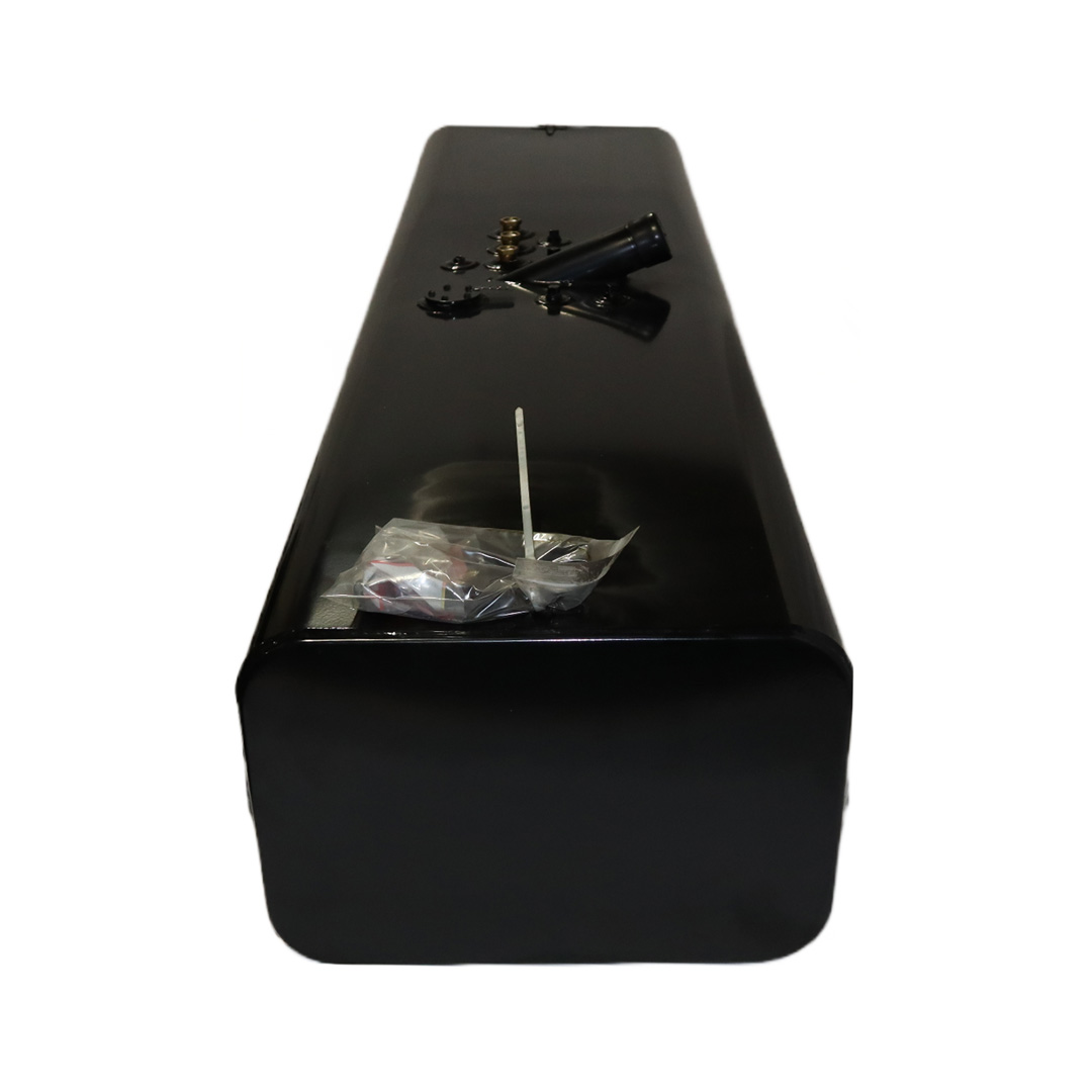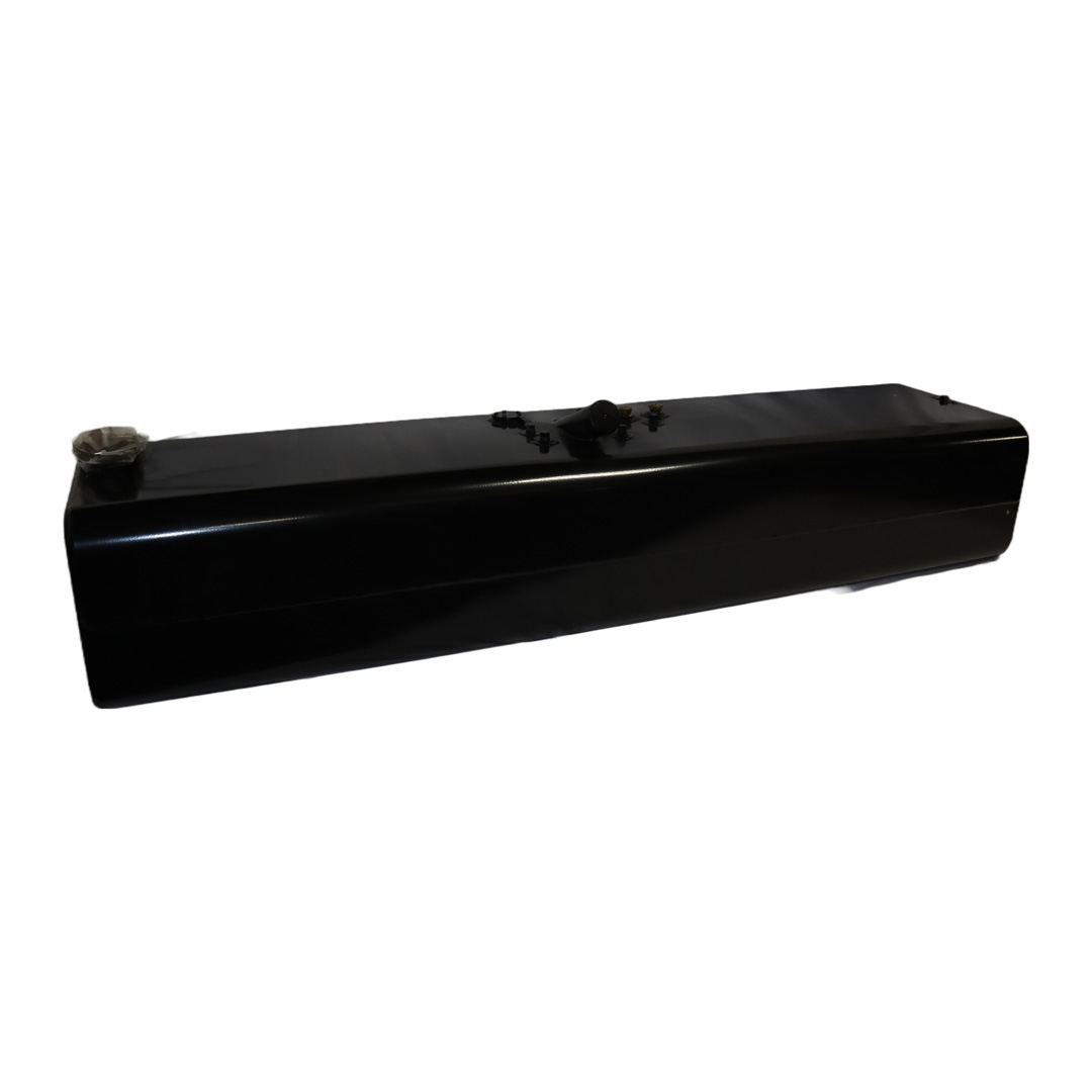 Replace your leaking, malfunctioning or rusted OE fuel tanks with these economically priced aftermarket replacement diesel fuel tanks from Cleveland Tank. Designed and manufactured to the same quality standards and specs as OE-supplied tanks, these direct-fit replacement tanks feature a rectangular design. They’re made from heavy-duty mild-grade steel for superior strength and durability, come with a gloss black powder coat finish for years of long-lasting corrosion protection and are pressure tested to ensure leak-free performance. Our rectangular steel tanks have an internal rust preventive coating applied, are DOT-approved, are for use with diesel fuel and are available in various size capacities. All tanks come with a magnetic drain plug, rollover protection vent, vent tubing, fuel cap, drawtube, return, equalizer fittings and sending unit flange. Optional features include a sending unit, sight gauge, locking fuel cap and drain check valve. Find the rectangular steel fuel tank that matches your applications specs for an original equipment-like fit and installation. This specific steel rectangular-shaped tank has a capacity of 90 gallons, weighs 190 lbs. and measures 80.75 in. long by 20.50 in. wide by 14.00 in. high.