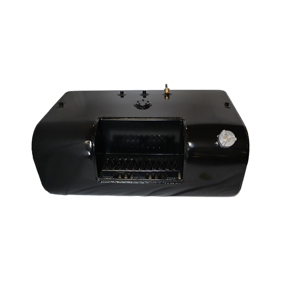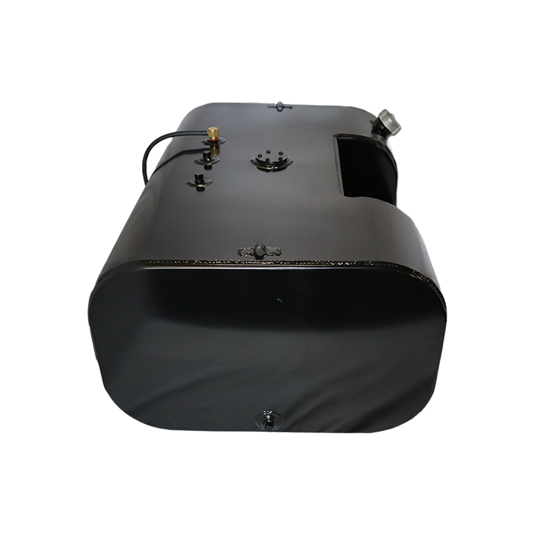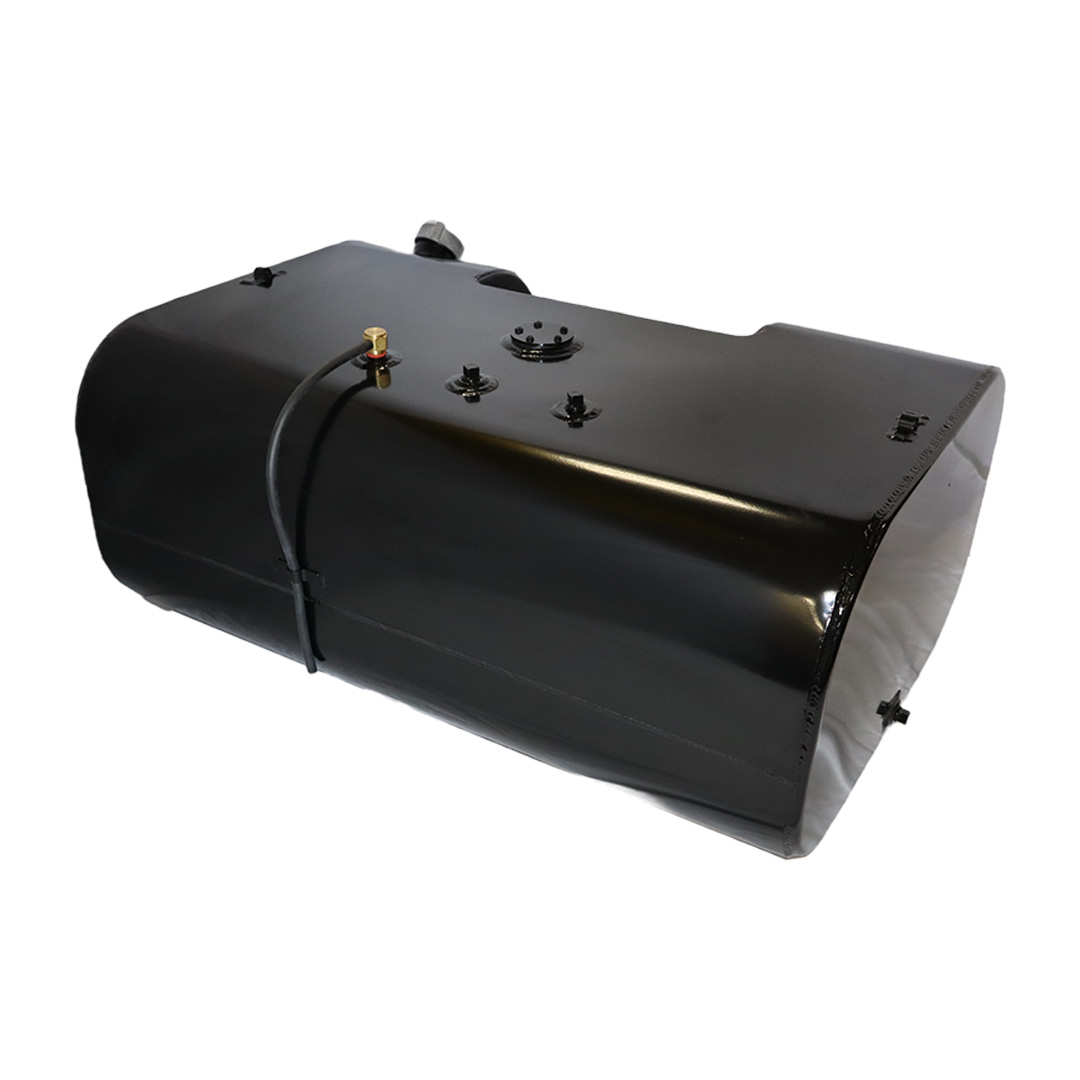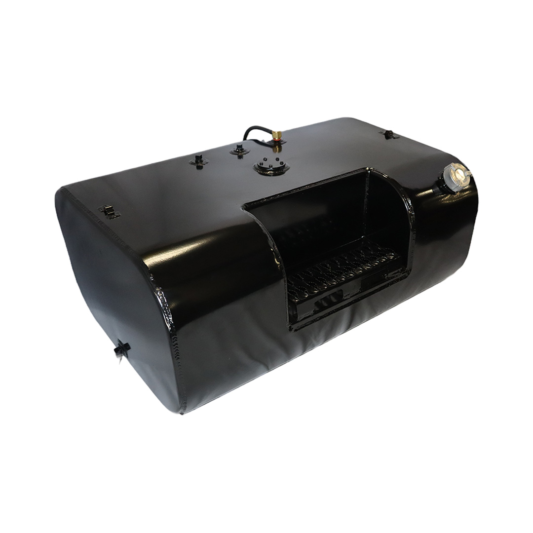 These aftermarket replacement steel diesel fuel tanks with built-in steps from Cleveland Tank are cost-effective alternatives to costly OE replacement tanks. Featuring a heavy-duty recessed steel step, these aftermarket fuel tanks are manufactured by hand from heavy-duty mild grade steel and for superior strength and durability. They come with a gloss black powder coat finish for years of long-lasting anti-corrosion protection, are pressure tested to ensure leak-free performance and have a rust preventive coating applied internally. The steel step tanks also come in various size capacities, are DOT-approved and are for use with diesel fuel. All steel fuel tanks with built-in steps come with a magnetic drain plug, rollover protection vent, vent tubing, fuel cap, drawtube, return, equalizer fittings and sending unit flange. Optional features include a sending unit, sight gauge, locking fuel cap and drain check valve. Find the rectangular steel step fuel tank that matches your applications specs for an original equipment-like fit and installation. This specific steel rectangular-shaped tank with built-in step has a capacity of 50 gallons, weighs 125 lbs. and measures 37.00 in. long by 25.00 in. wide by 15.25 in. high.