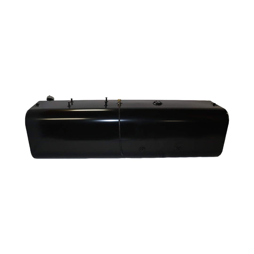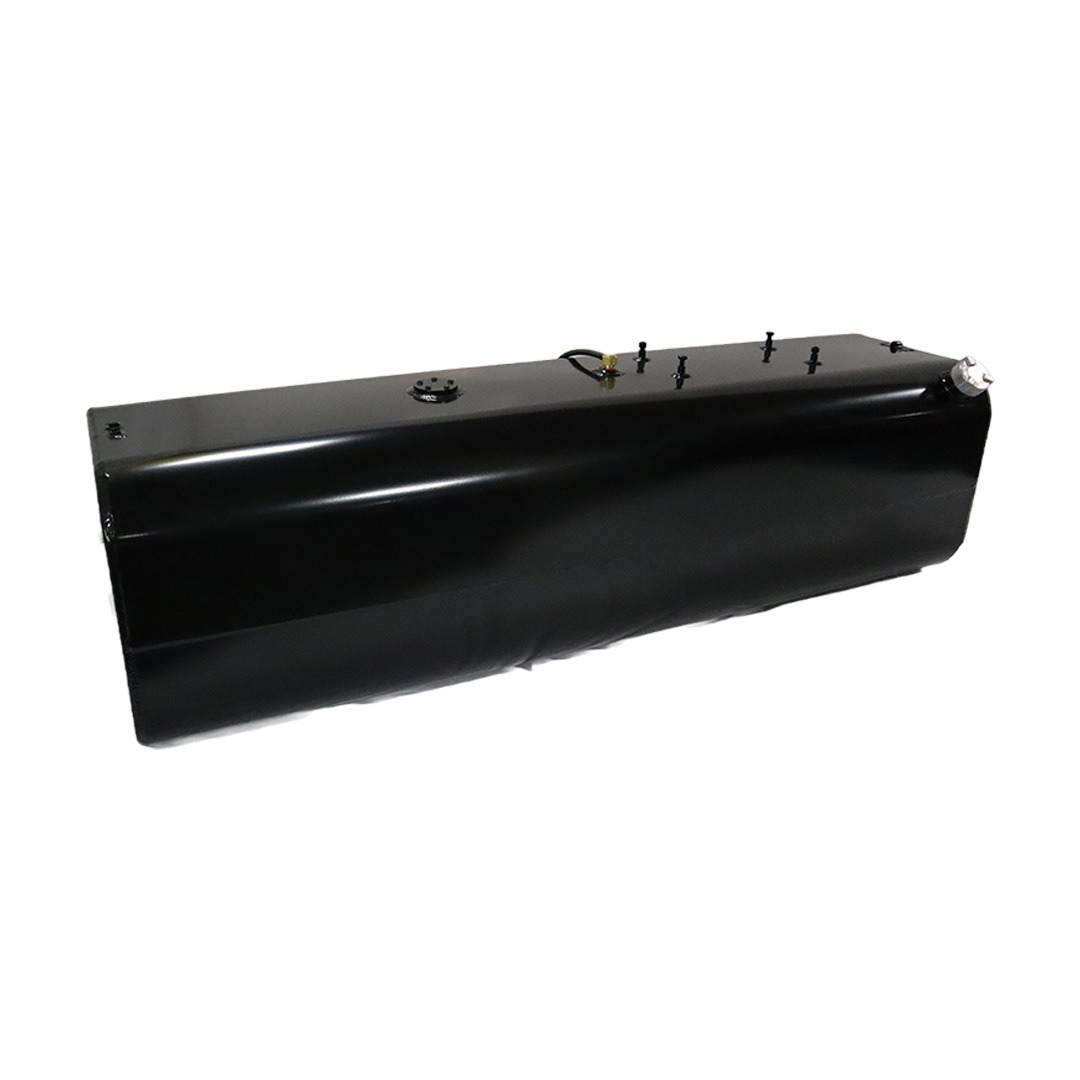 Replace your leaking, malfunctioning or rusted OE fuel tanks with these economically priced aftermarket replacement diesel fuel tanks from Cleveland Tank. Designed and manufactured to the same quality standards and specs as OE-supplied tanks, these direct-fit replacement tanks feature a rectangular design. They’re made from heavy-duty mild-grade steel for superior strength and durability, come with a gloss black powder coat finish for years of long-lasting corrosion protection and are pressure tested to ensure leak-free performance. Our rectangular steel tanks have an internal rust preventive coating applied, are DOT-approved, are for use with diesel fuel and are available in various size capacities.  All tanks come with a magnetic drain plug, rollover protection vent, vent tubing, fuel cap, drawtube, return, equalizer fittings and sending unit flange. Optional features include a sending unit, sight gauge, locking fuel cap and drain check valve. Find the rectangular steel fuel tank that matches your applications specs for an original equipment-like fit and installation. This specific steel rectangular-shaped tank has a capacity of 75 gallons, weighs 135 lbs. and measures 64.00 in. long by 18.00 in. wide by 18.00 in. high.