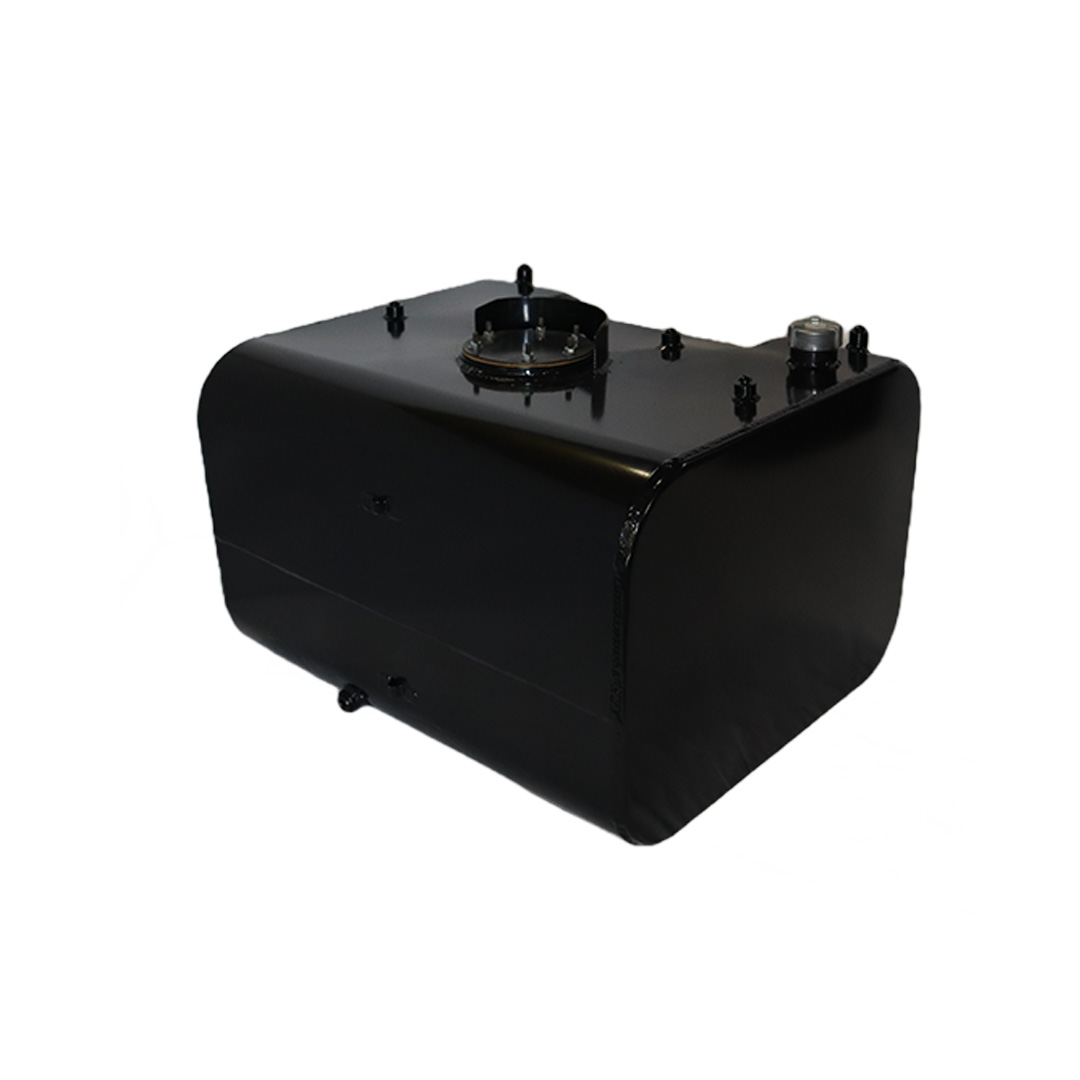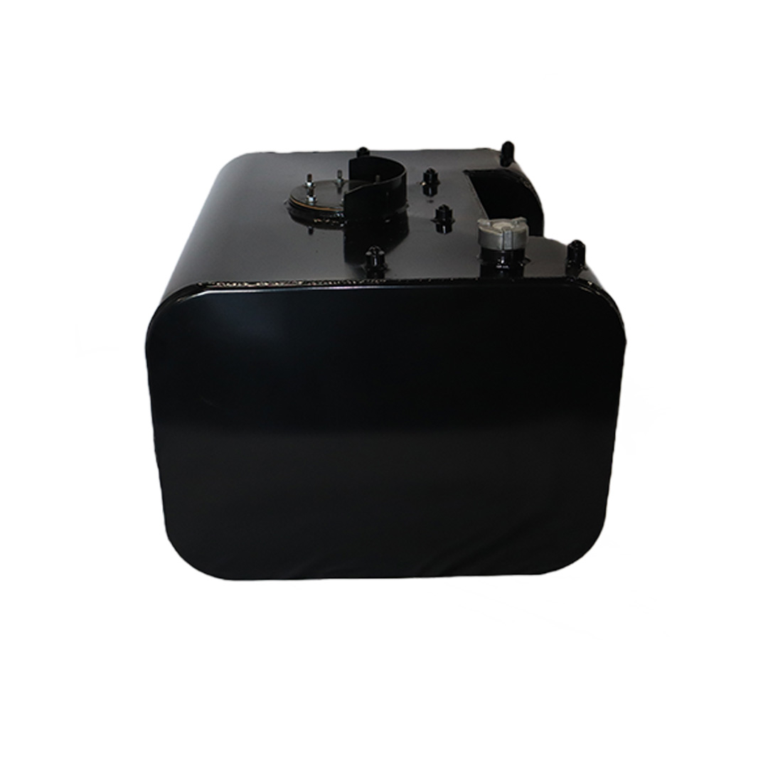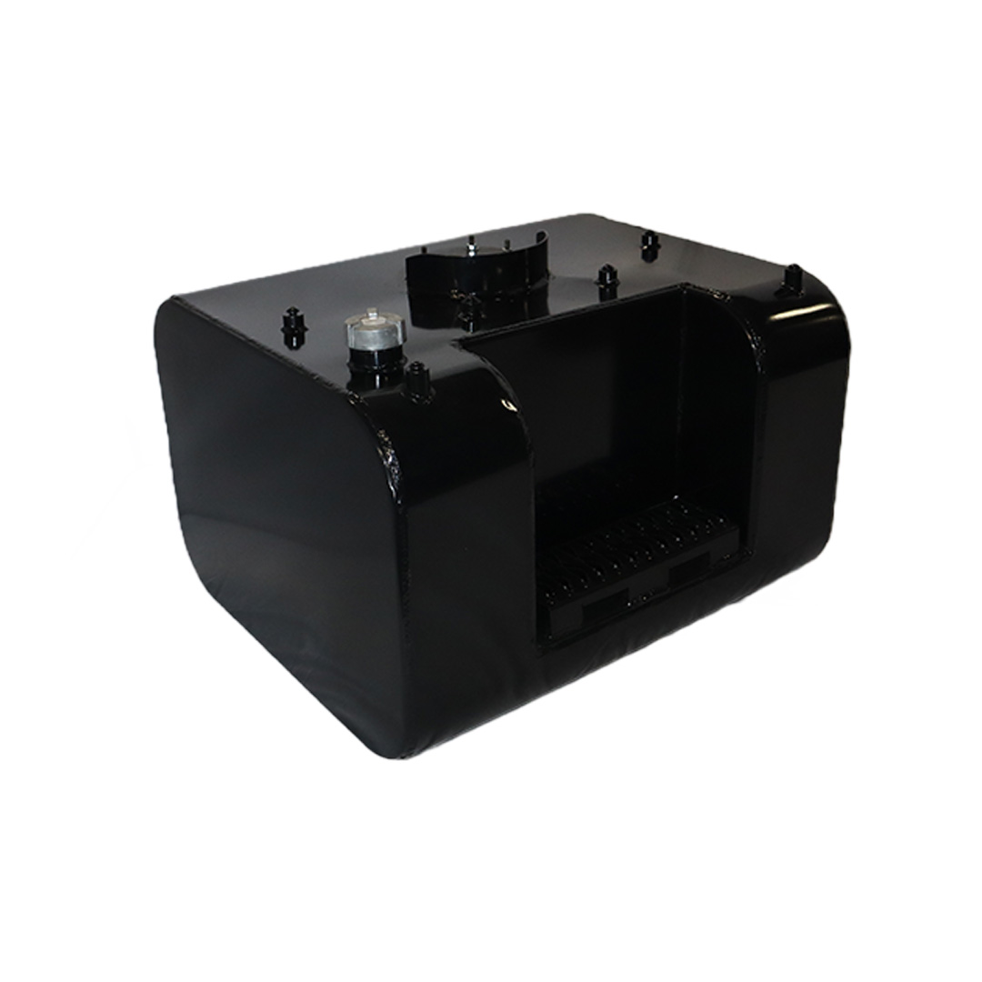 These aftermarket replacement steel diesel fuel tanks with built-in steps from Cleveland Tank are cost-effective alternatives to costly OE replacement tanks. Featuring a heavy-duty recessed steel step, these aftermarket fuel tanks are manufactured by hand from heavy-duty mild grade steel and for superior strength and durability. They come with a gloss black powder coat finish for years of long-lasting anti-corrosion protection, are pressure tested to ensure leak-free performance and have a rust preventive coating applied internally. The steel step tanks also come in various size capacities, are DOT-approved and are for use with diesel fuel. All steel fuel tanks with built-in steps come with a magnetic drain plug, rollover protection vent, vent tubing, fuel cap, drawtube, return, equalizer fittings and sending unit flange. Optional features include a sending unit, sight gauge, locking fuel cap and drain check valve. Find the rectangular steel step fuel tank that matches your applications specs for an original equipment-like fit and installation. This specific steel rectangular-shaped tank with built-in step has a capacity of 100 gallons, weighs 190 lbs. and measures 50.00 in. long by 23.00 in. wide by 22.00 in. high.